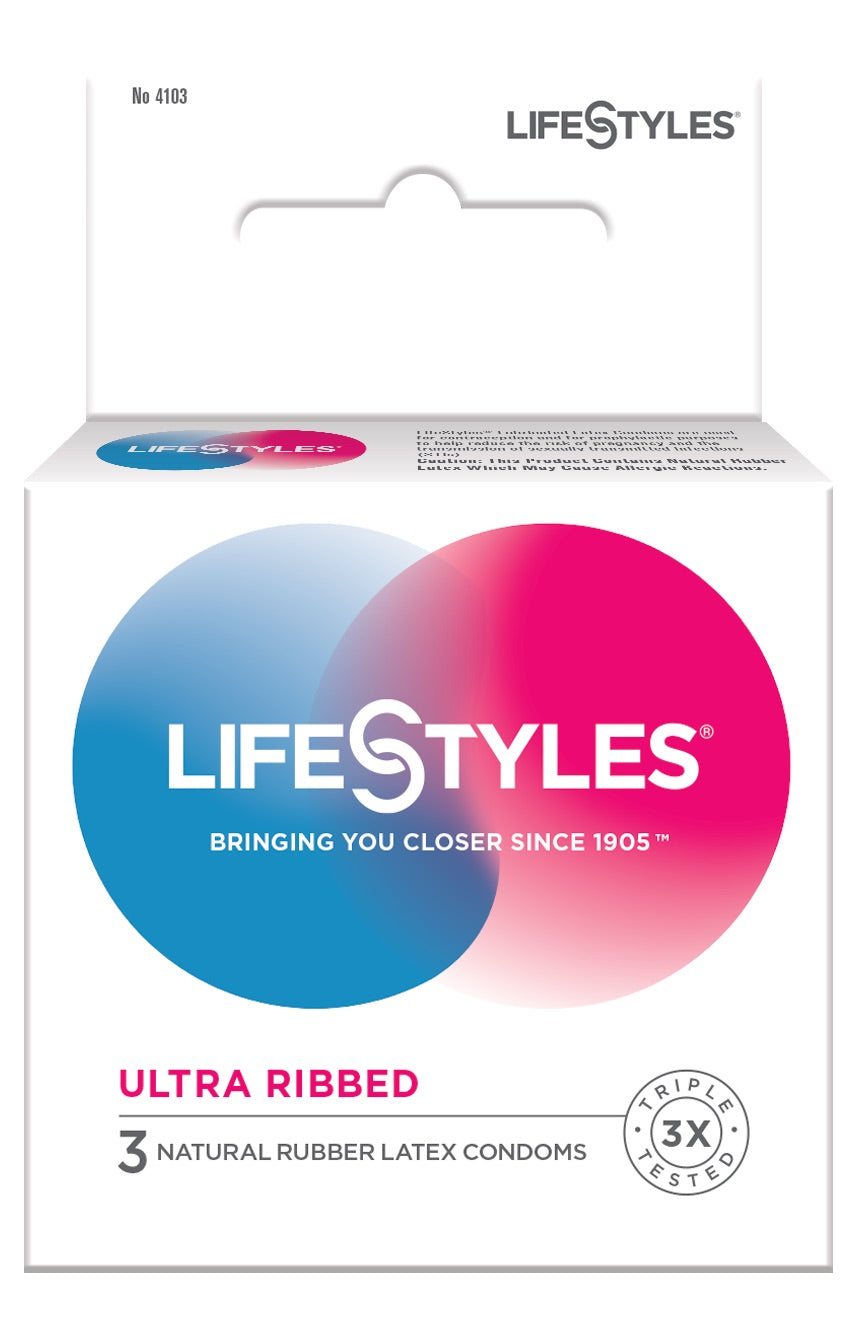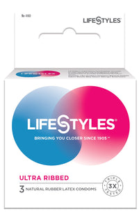 LIFE STYLES ULTRA RIBBED - 3 NATURAL RUBBER LATEX CONDOMS Sale